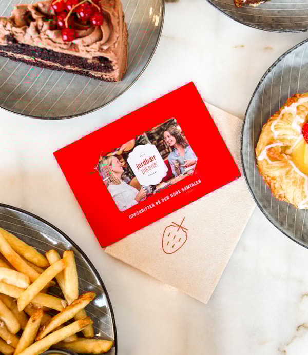 Jordbærpikenes gavekort må kjøpes i en café, og kan brukes i alle våre caféer i Norge.đGavekortet har 24 måneder gyldighet.