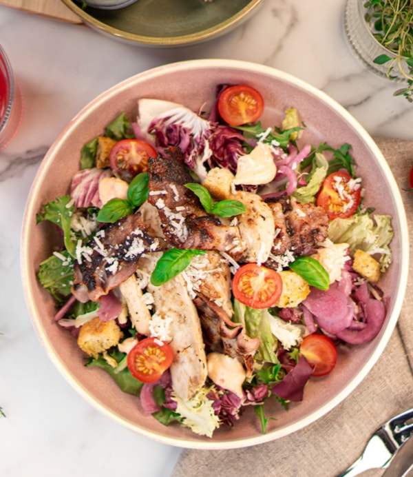 Salater og varme retter laget av friske råvarer i lokale kjøkken